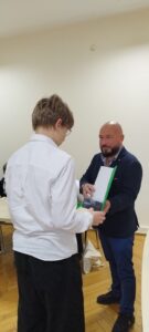 Po zaciętej rywalizacji wyłoniliśmy 10 zwycięzców, którym raz jeszcze serdecznie gratulujemy! Pełna lista zwycięzców była już ogłoszona wcześniej, a dziś pragniemy jeszcze raz podziękować wszystkim Uczestnikom – Wasza wiedza, zaangażowanie i umiejętności zasługują na najwyższe wyróżnienie! Podczas ceremonii, Zwycięzcy otrzymali nagrody rzeczowe (smartphony, tablety, słuchawki, smartwatche) o łącznej wartości 10000 zł. Mamy nadzieję, że te nagrody będą dla Was dodatkowym motywatorem do dalszego rozwoju. To dzięki Waszemu zaangażowaniu i pasji konkurs stał się wyjątkowym wydarzeniem, które promuje wiedzę i umiejętności w dziedzinie rzemiosła oraz zawodów rzemieślniczych.